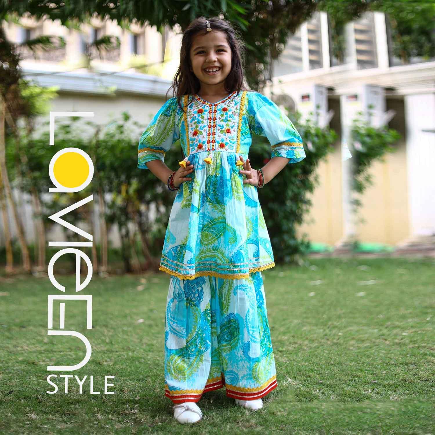 Add a splash of joy to her wardrobe with this breezy turquoise and lime green Sharara Kurti set! Featuring intricate thread embroidery on the yoke and playful yellow tassels, this outfit blends traditional charm with a fresh modern vibe. 🌿💙